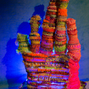 It's challenging to describe my art since I work in many different mediums, and the materials allow the work to come out very differently. Some of my work, such as soft sculptures and weavings, are generally installation-based. My focus with these is on creating an altered space in which to present them. Some of it is textile, including cross-stitching, embroidering, felting, sewing, and beading. Some is traditional drawings with markers, colored pencil, watercolor, or pastel. And some is collage. I always love experimentation; however, in my work you will see techniques I repeat constantly, like basket weaving. I generally gravitate to colors that are vibrant, lively, and almost celebratory. Much of the sculptural work is inspired by nature and can be very organic in shape -- almost clumsy in its construction.